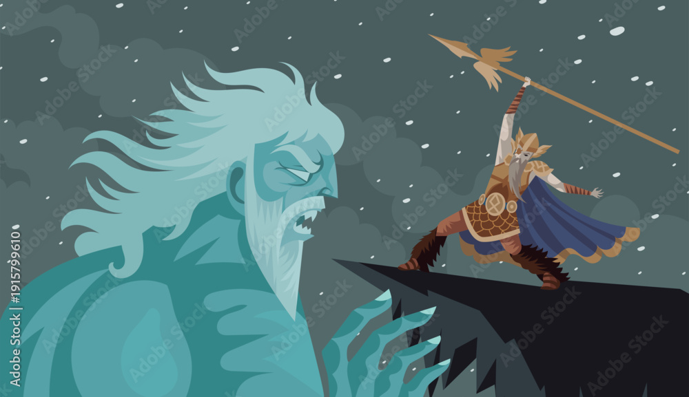 Samolepka odin fighting with gungnir spear against Ymir giant
