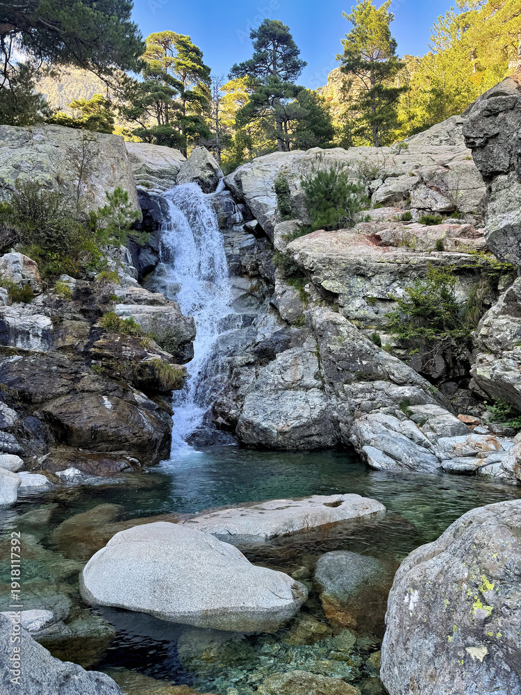 Samolepka Mountain landscape with a small waterfall and river on the Mediterranean coast o