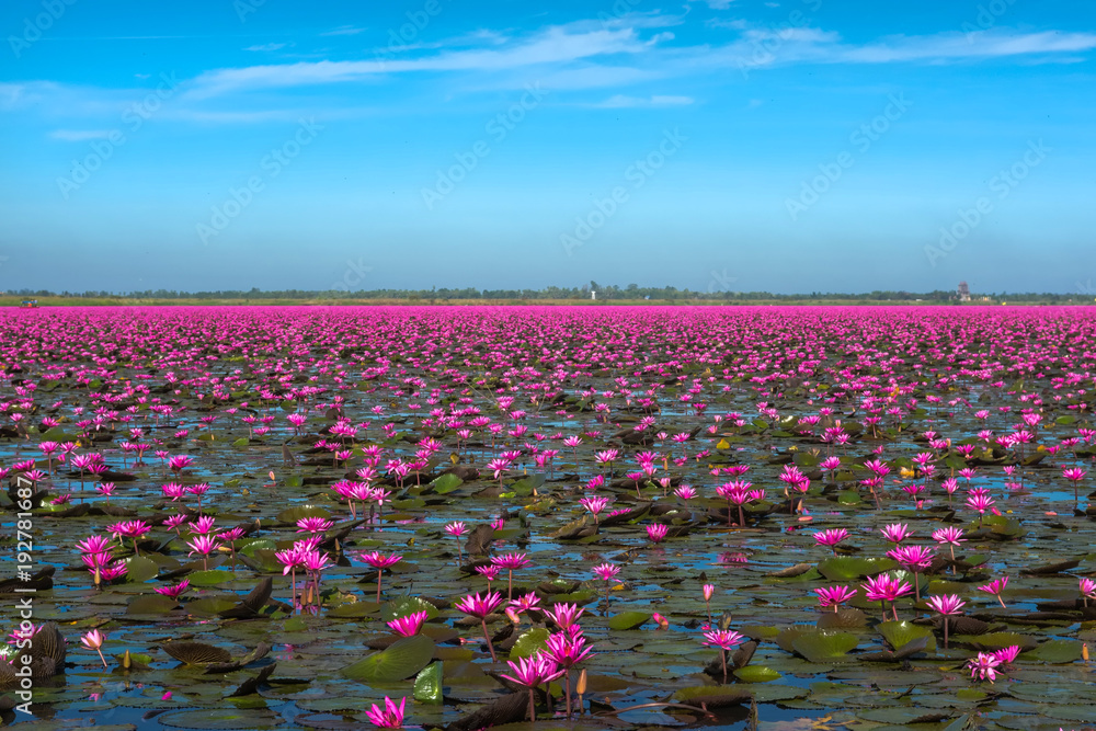 Samolepka Lake of Red waterlily at Udonthani Province , Thailand