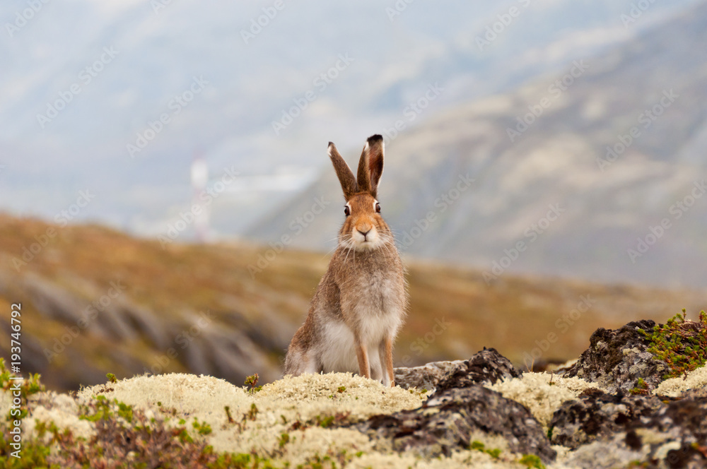 Samolepka Tundra hare also known as mountain hare in natural habitat