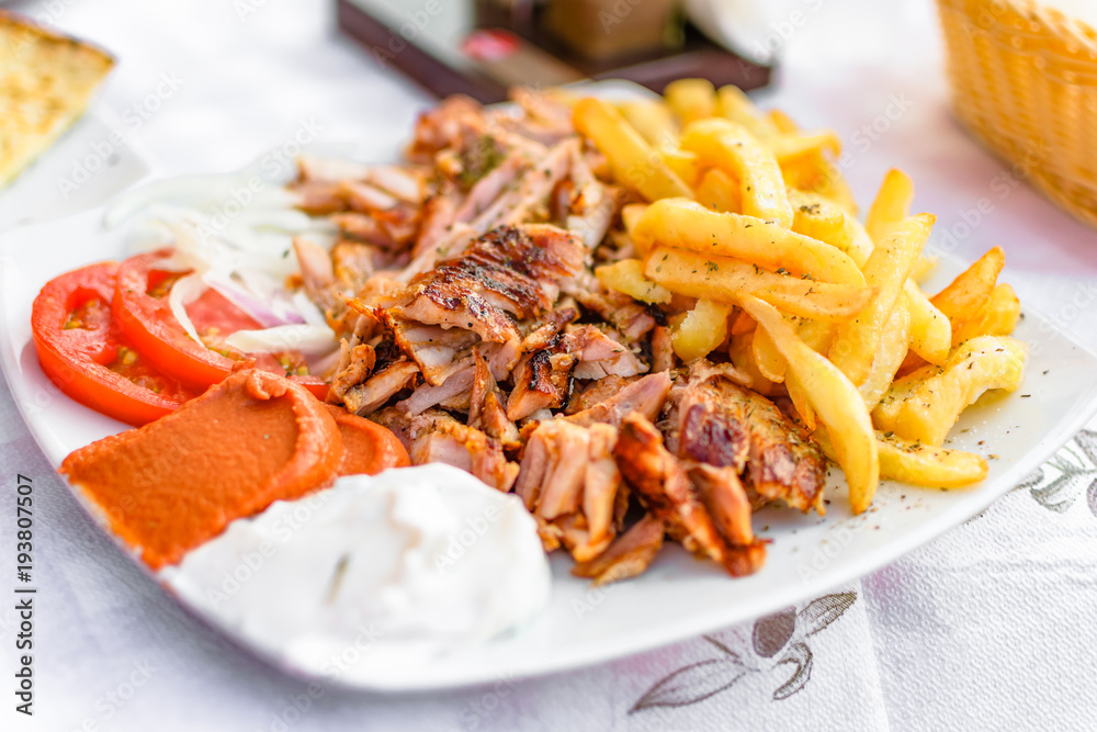 Samolepka Greek gyros on a plate with French fries and vegetables