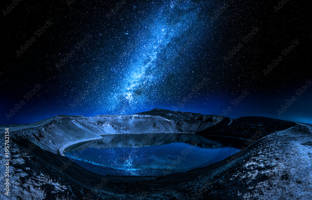 Samolepka Milky way and lake in the volcano crater, Iceland