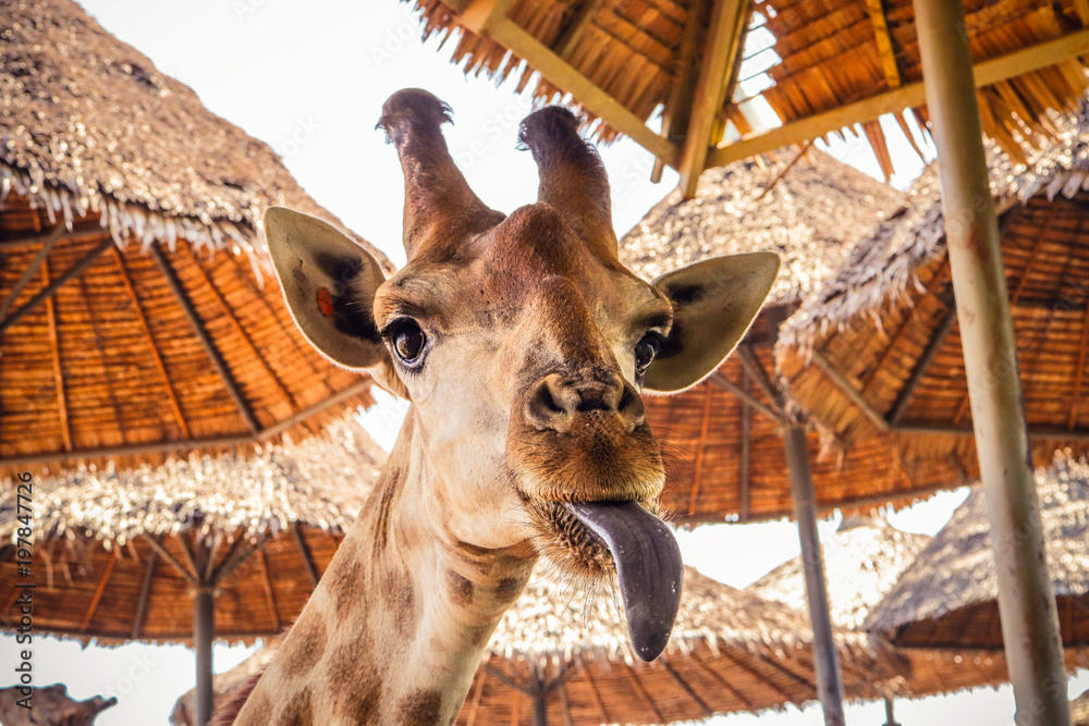 Samolepka close up portrait of a weird funny face giraffe