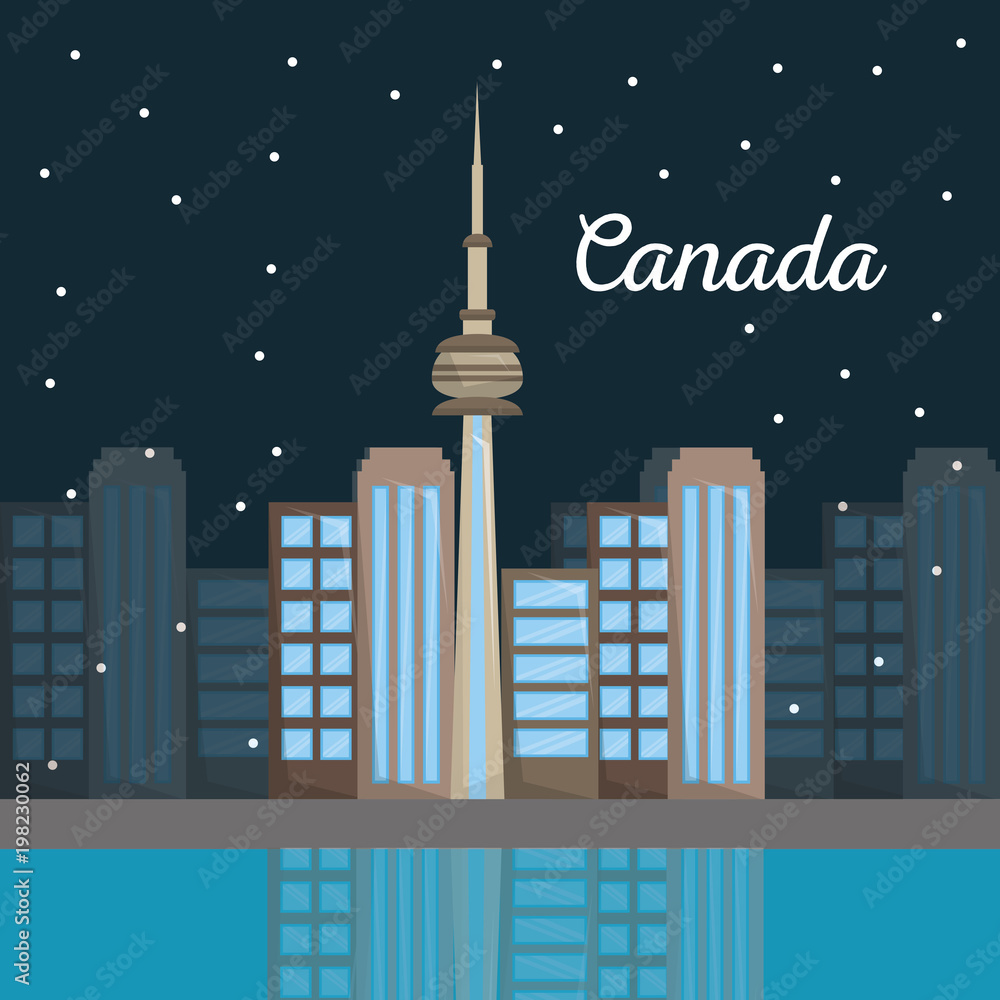 Samolepka canada toronto city architecture skyline at night vector illustration