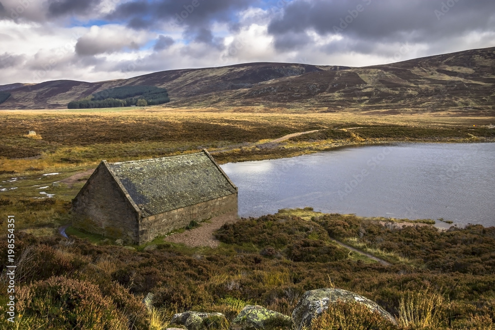 Samolepka Boat house at Loch Muick, Ballater, Scotland, UK
