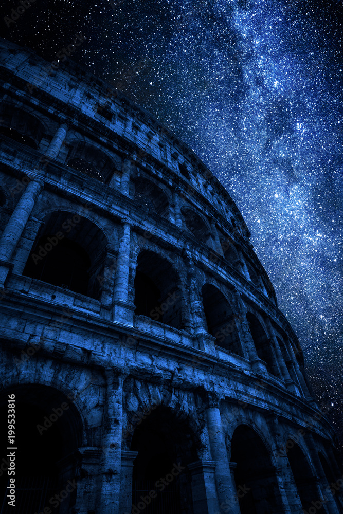Samolepka Milky way and great Colosseum at night in Rome, Italy