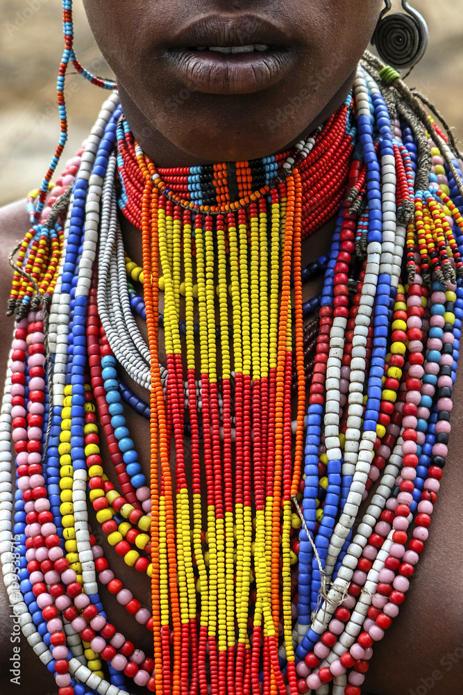 Samolepka Close-up of a woman from the Arbore tribe with traditional jewelry, Omo valley, Ethiopia