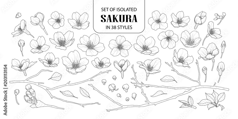 Samolepka Set of isolated sakura in 38 styles.