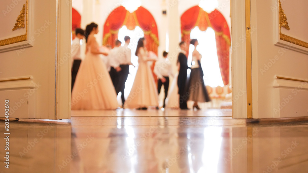 Samolepka Ladies with cavaliers in vintage costumes dancing waltz