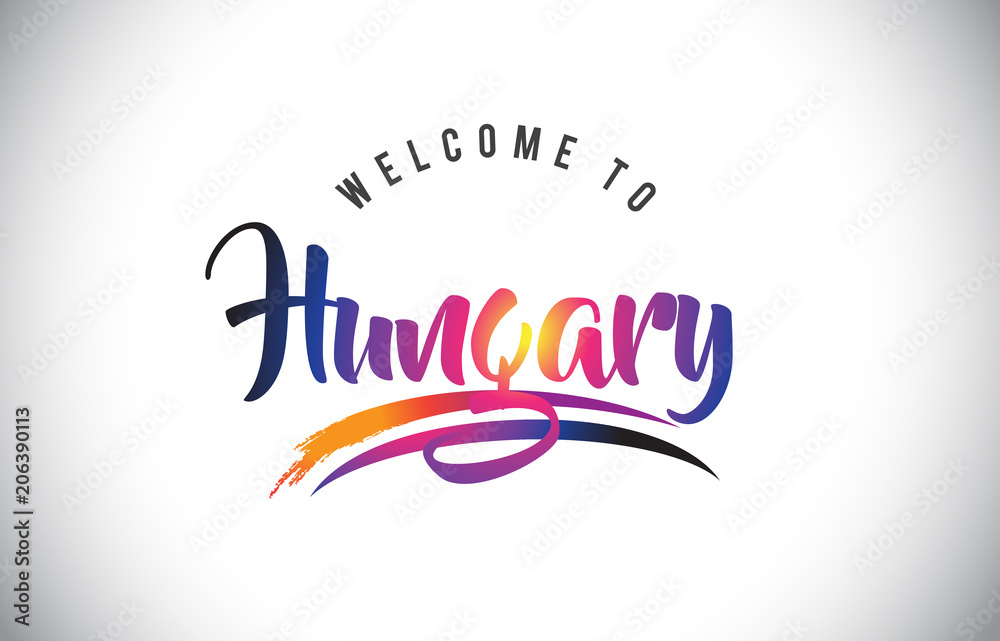 Samolepka Hungary Welcome To Message in Purple Vibrant Modern Colors.