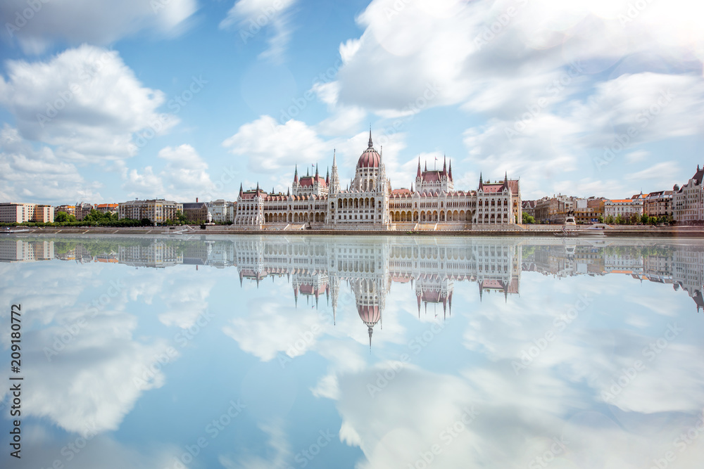Samolepka View on the riverside with Parliament building during the daylight in Budapest city