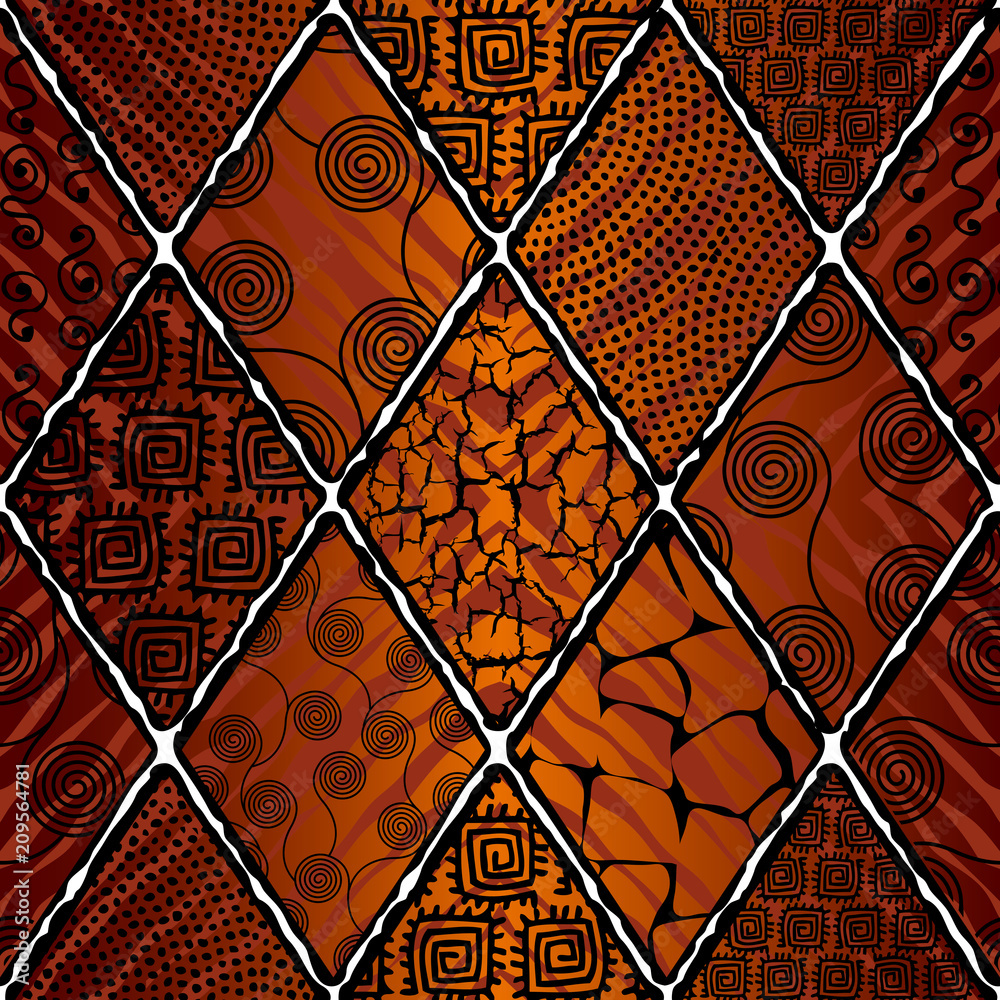 Samolepka Tribal boho seamless pattern in african style on black background