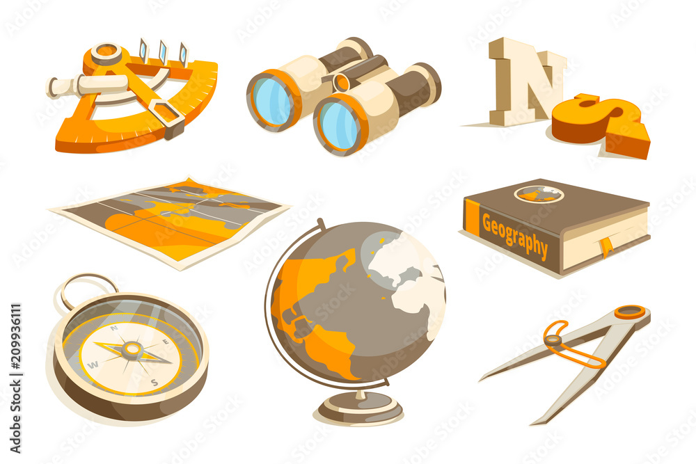 Samolepka Vector monochrome symbols of exploration and geography