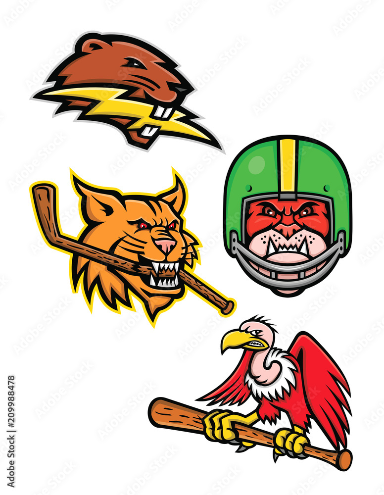 Samolepka Sports mascot icon illustration set of heads of American wildlife like the North