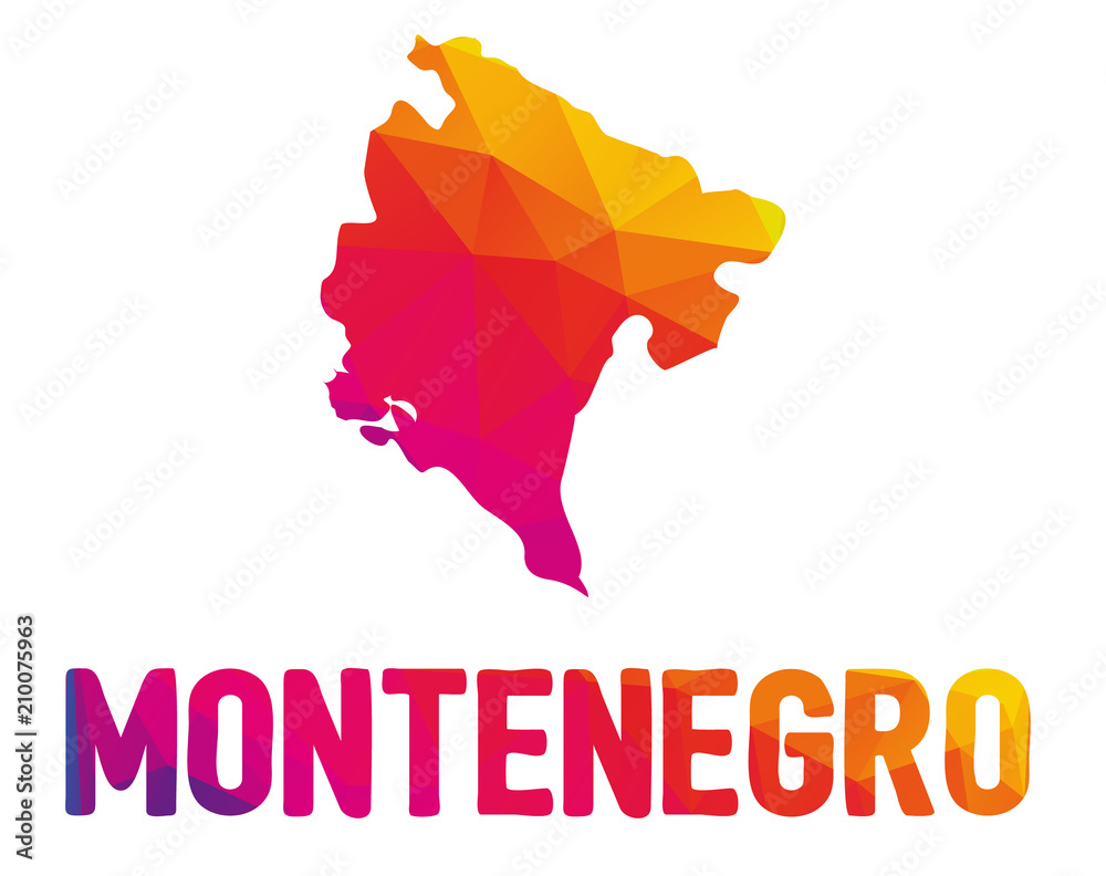 Samolepka Low polygonal map of Montenegro (Montenegrin) with sign Montenegro, both in warm