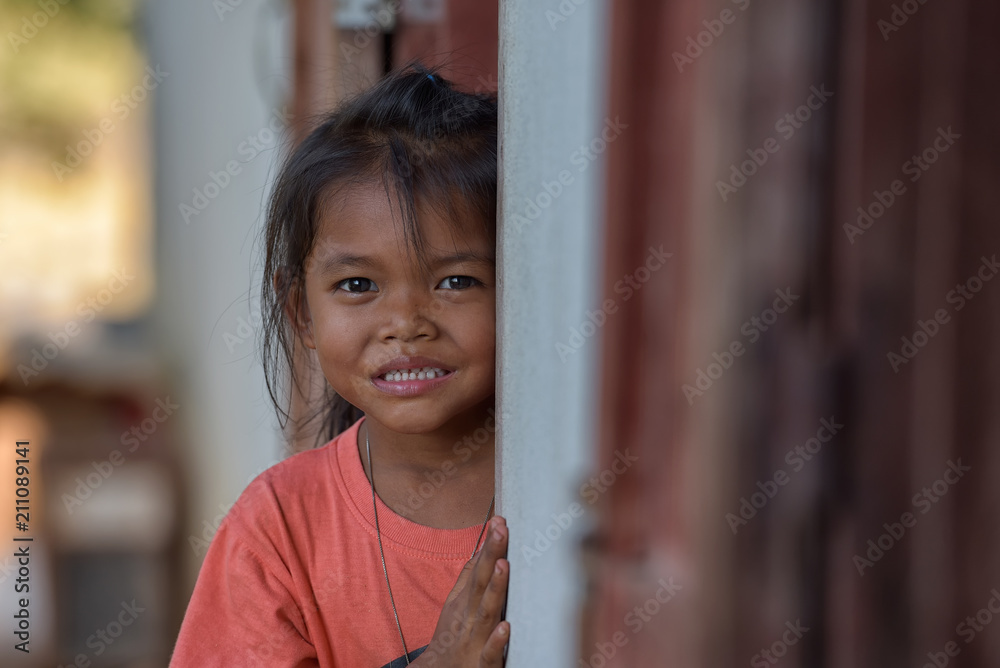 Samolepka Smiling faces of young children or young people from rural Asia.