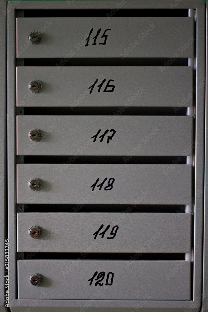 Samolepka gray metal mailboxes in the entrance of a apartment building
