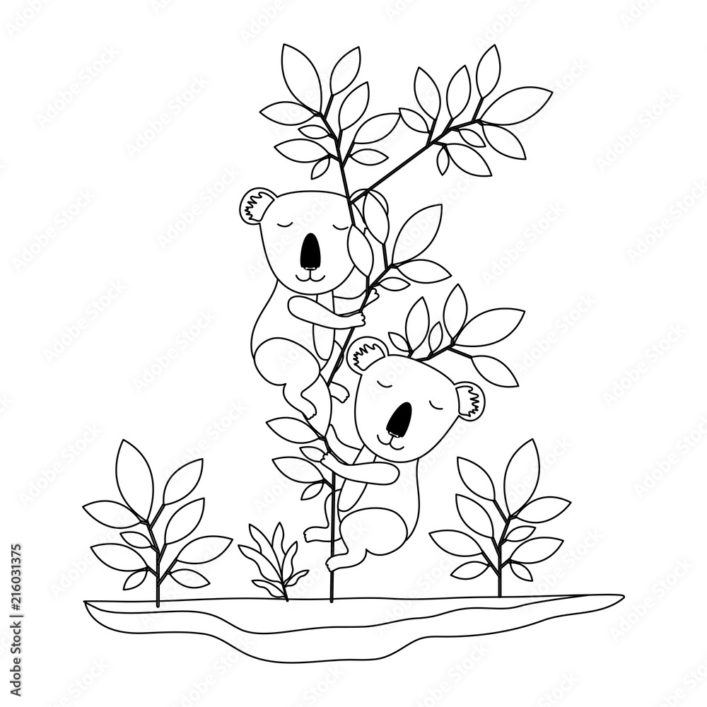 Samolepka wild koalas couple in the jungle vector illustration design