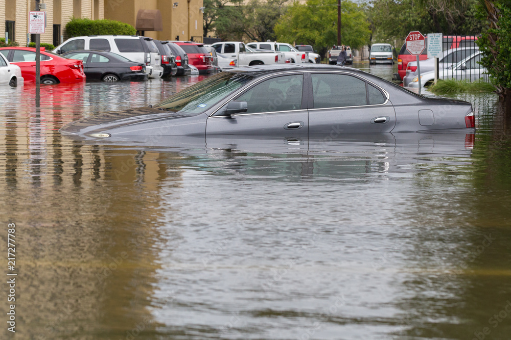 Samolepka Cars submerged in Houston, Texas, US during hurricane Harvey