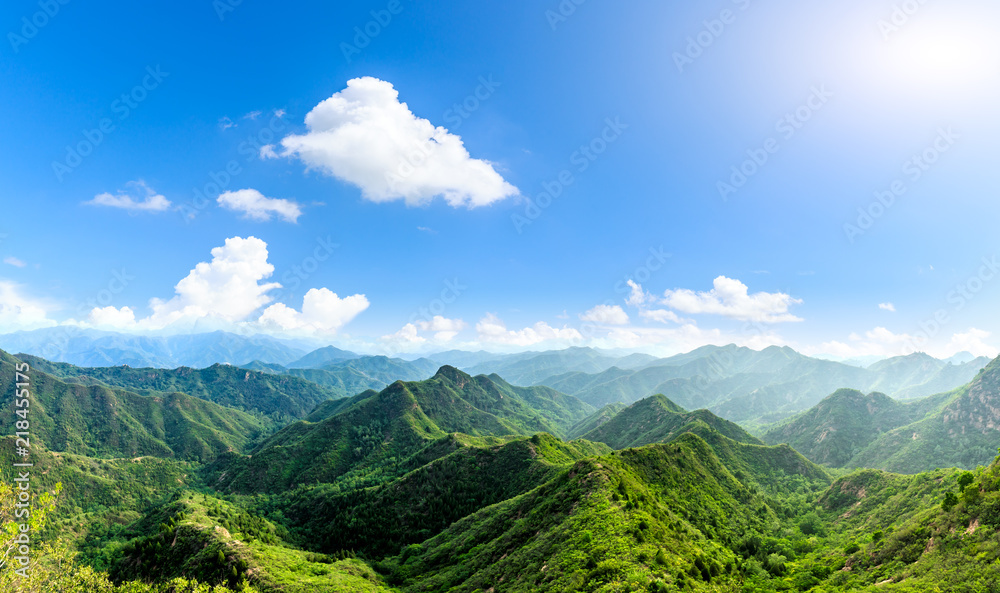 Samolepka Green mountains and beautiful sky clouds under the blue sky