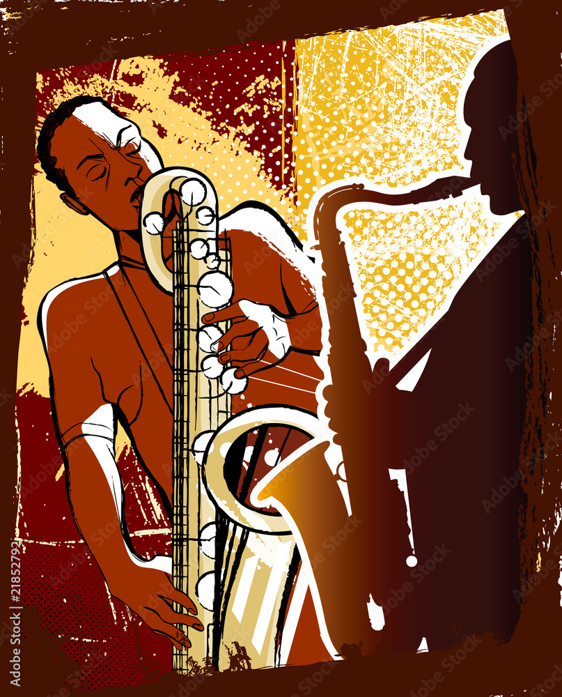 Samolepka saxophonists on a grunge background
