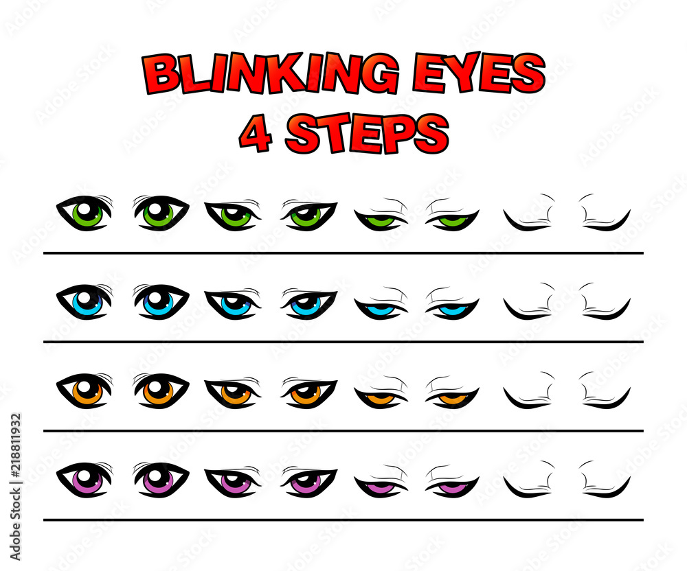 Samolepka blinking eyes steps vector preset for character animation design isolated on whi