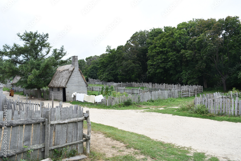 Samolepka Plimoth Plantation Colonial Village with Laundry Drying