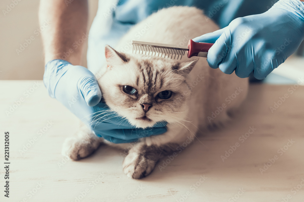 Samolepka Male Doctor Veterinarian Examining Cute Grey Cat
