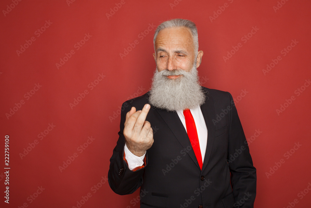 Samolepka Old bearded businessman showing fuck sign at camera and smiling