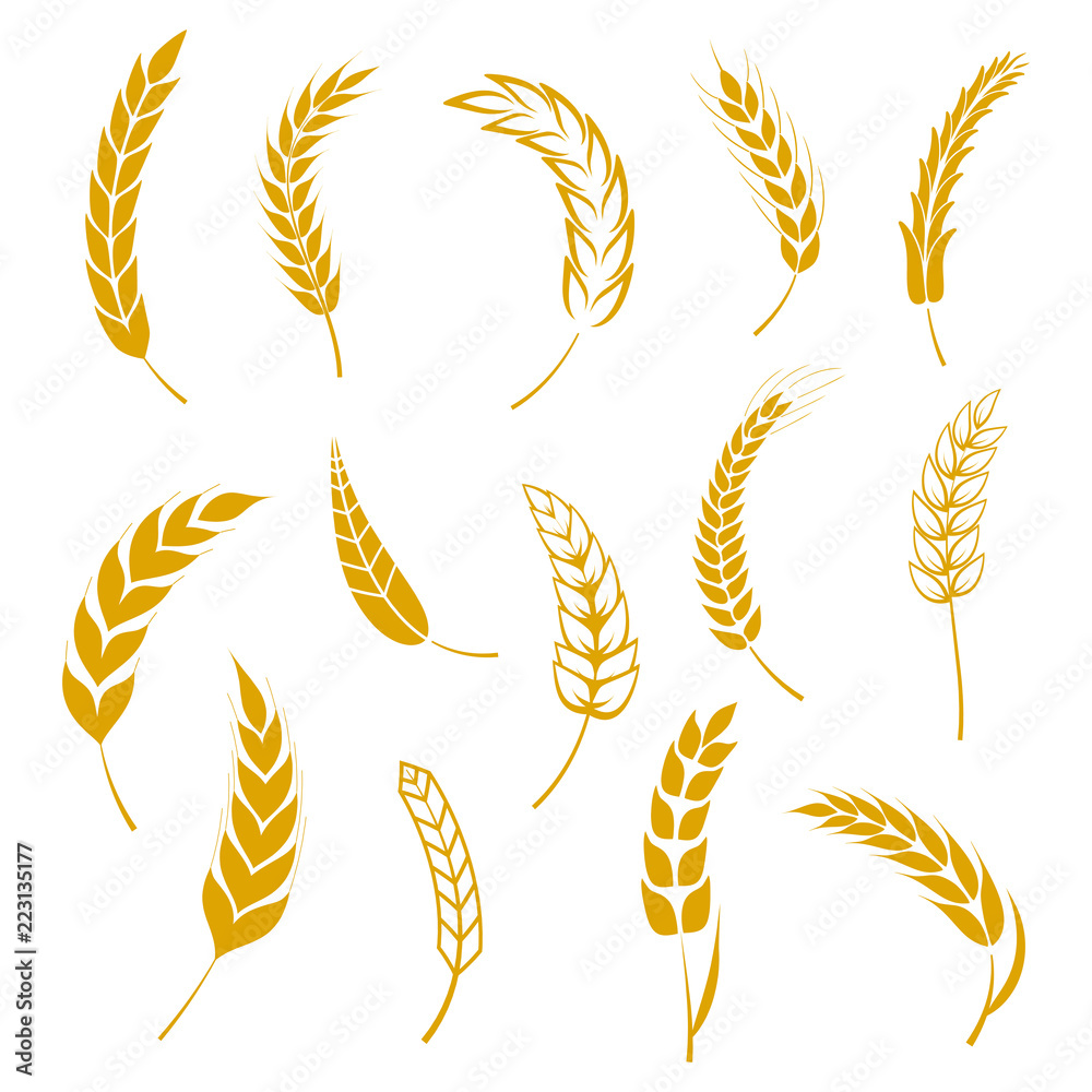 Samolepka Set of simple wheats ears icons and grain design elements for beer, organic wheats local farm fresh food, bakery themed wheat design, grain, beer elements, wheat simple