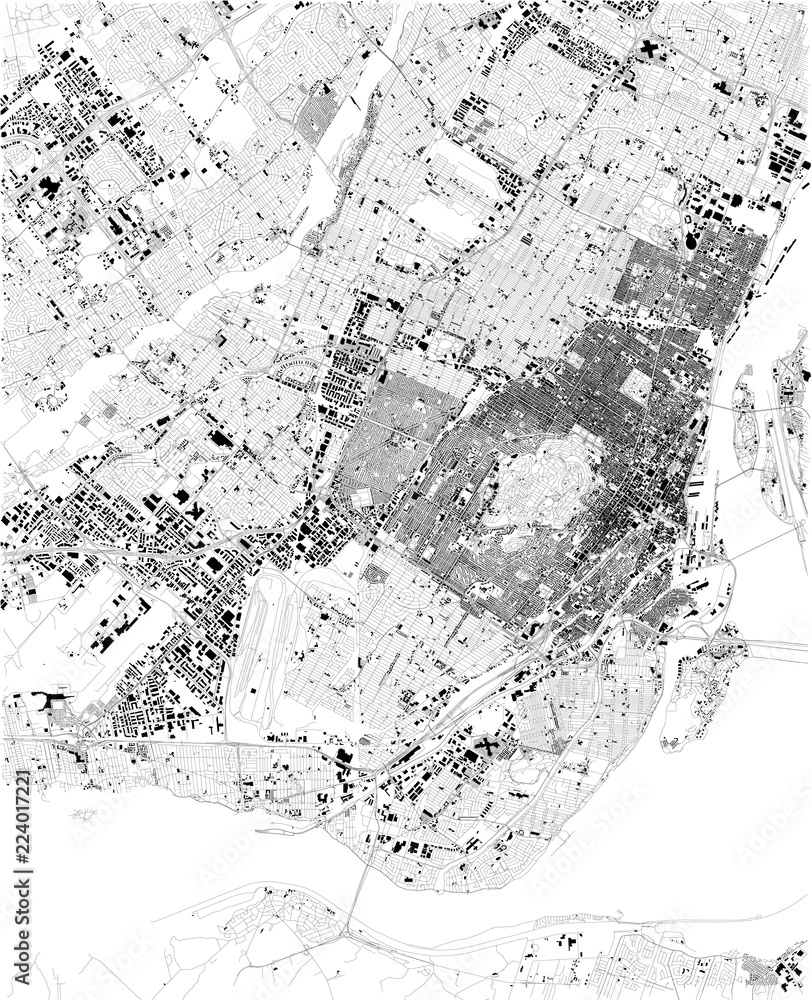 Samolepka Cartina di Montreal, vista satellitare, mappa in bianco e nero
