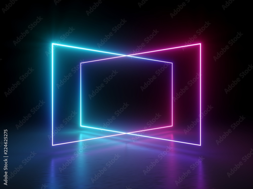Samolepka 3d render, abstract fluorescent background, laser show, night club interior ligh