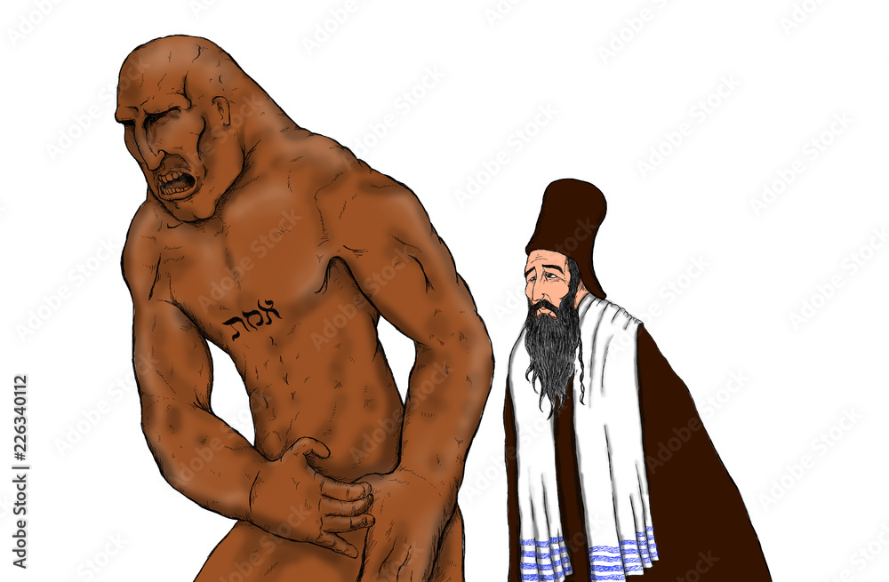 Samolepka Illustration of a scene in which Rabbi Judah Loew after having created the Golem