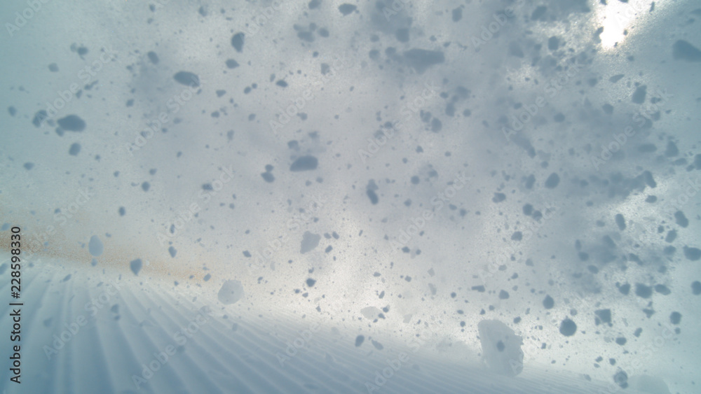 Samolepka POV: Wild avalanche rushes down the groomed ski slopes in the beautiful Alps