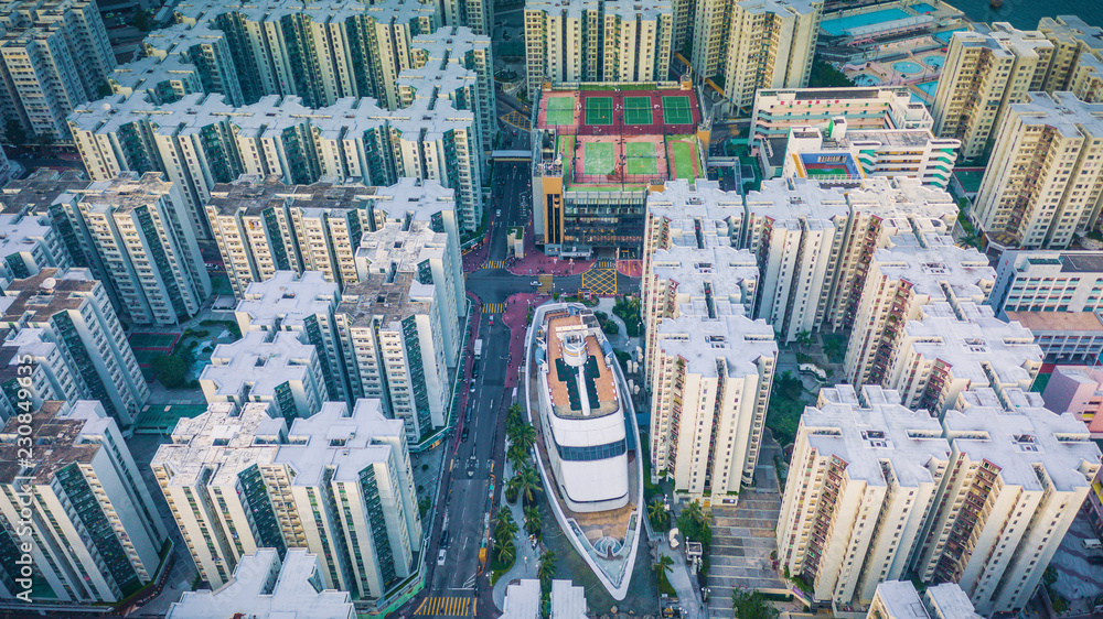 Samolepka Downtown skyline with urban skyscrapers at whampoa district hong kong