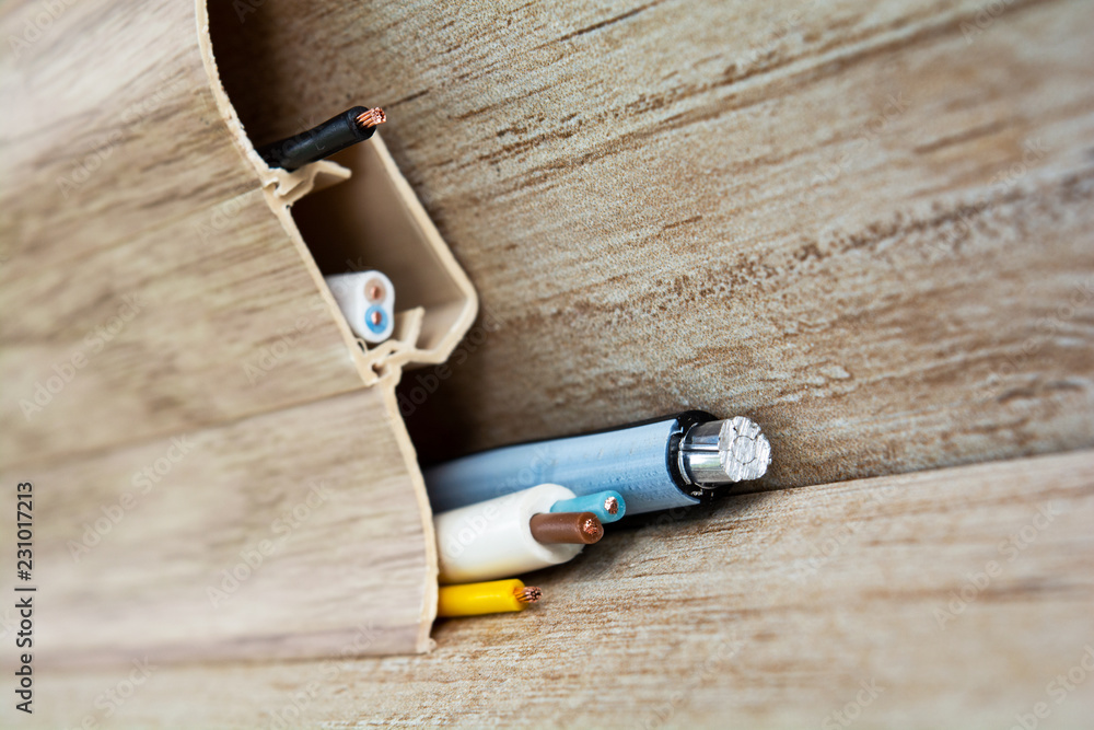 Samolepka wires in the floor skirting.laying wires under the plinth