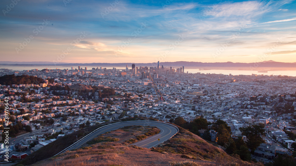 Samolepka Aerial San Francisco Panoramic Pink Sunrise
