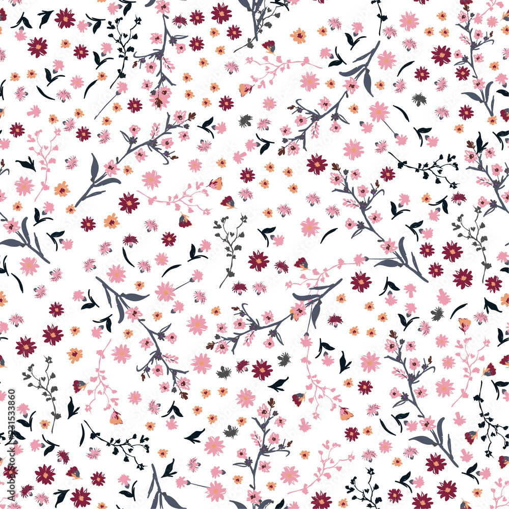 Samolepka Beautiful wild flowers bright pattern in small-scale pink and red flowers