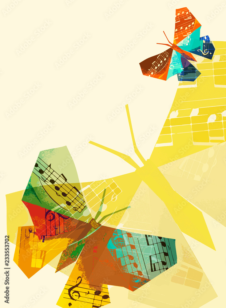 Samolepka Origami butterfly with musical notes