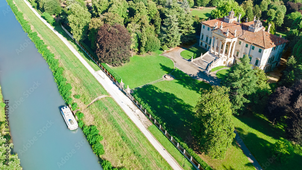 Samolepka Aerial top view of ancient villa Giovanelli and garden on canal Brenta from abov