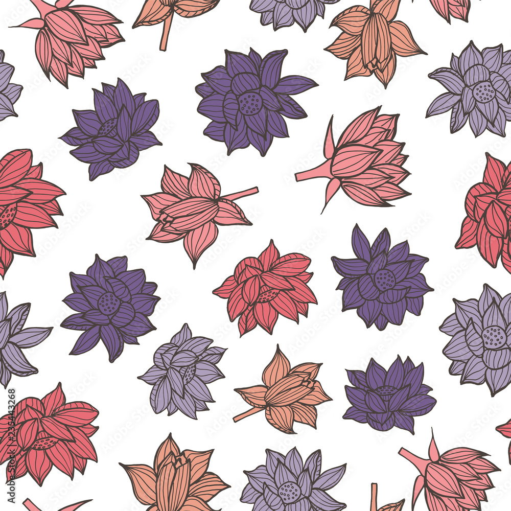 Samolepka Waterlilies or lotus flowers seamless pattern background texture in a modern colorful style