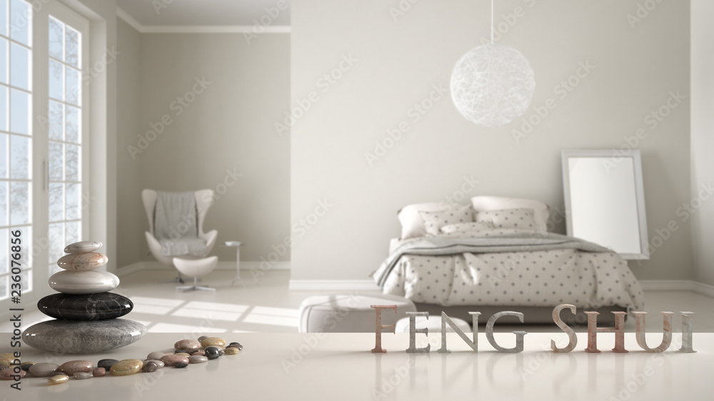 Samolepka Wooden vintage table shelf with pebble balance and 3d letters making the word fe