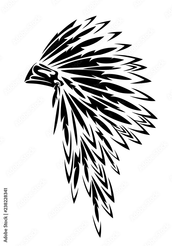 Samolepka native american tribal chief traditional feathered headdress black and white vec