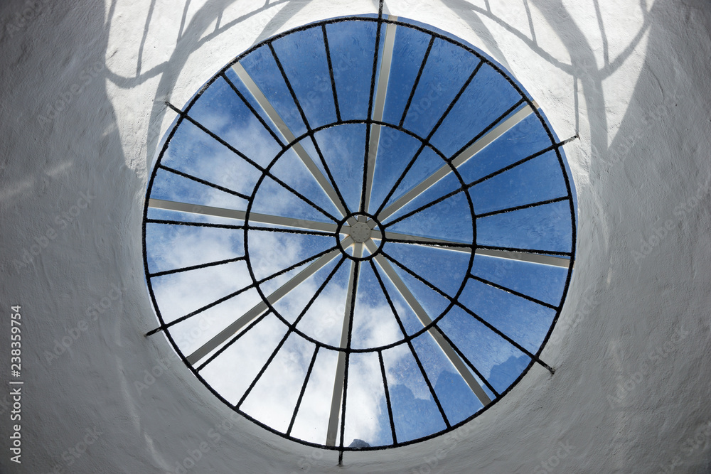 Samolepka Round roof window with a view of the sky and clouds