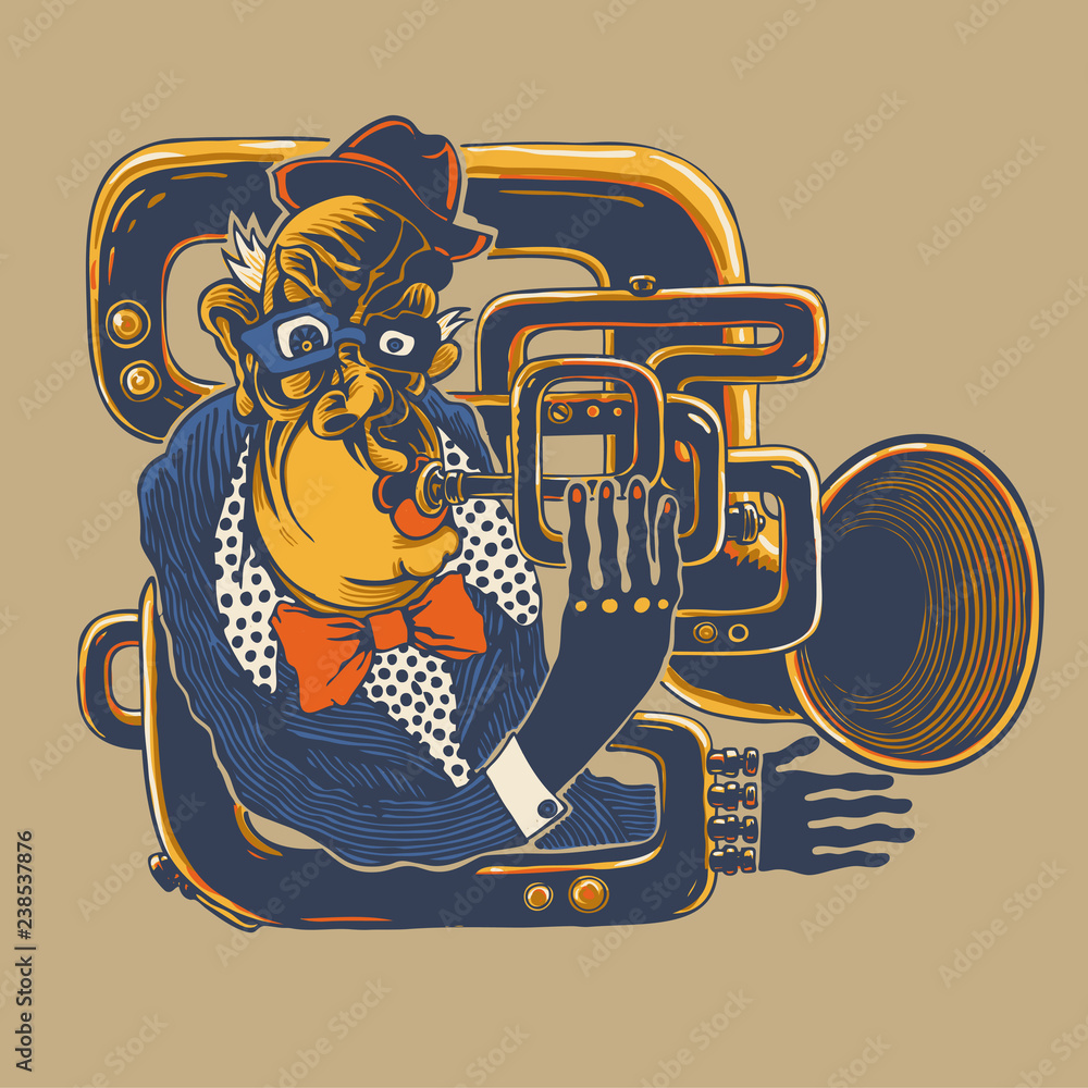 Samolepka Jazz musician, trumpeter. drawing style. vector illustration