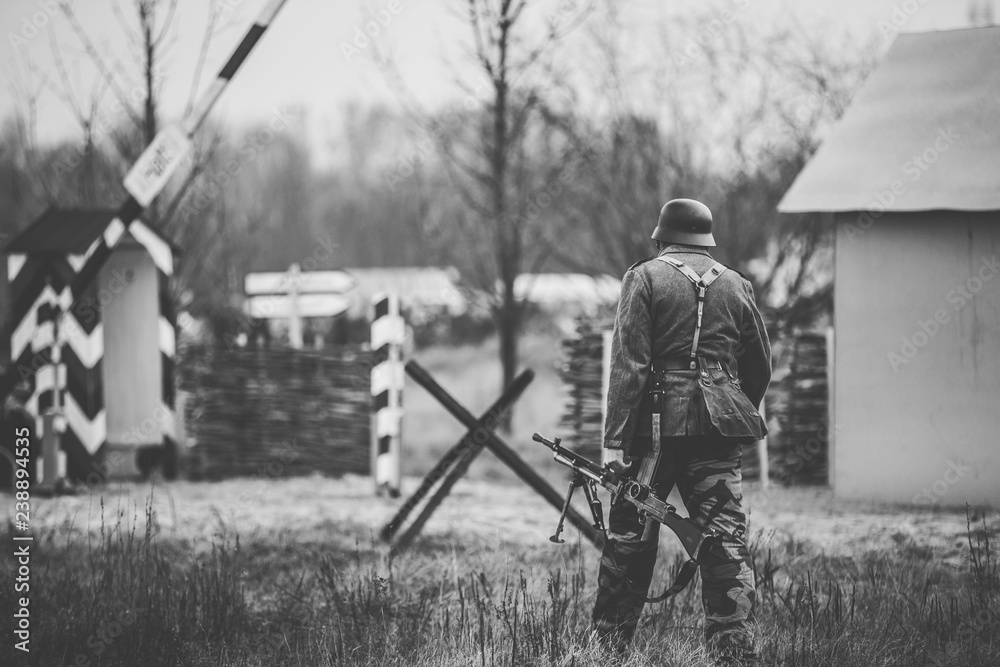 Samolepka Re-enactor Dressed As World War II German Soldier Holding Zb-30