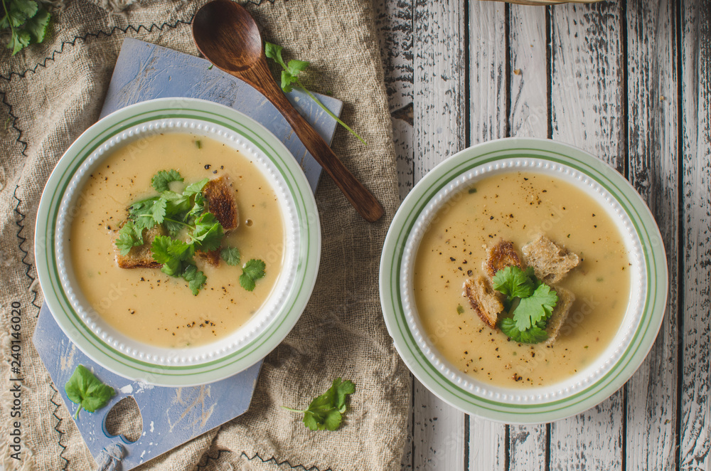 Samolepka Creamy mushroom soup with fresh herbs garlic croutons