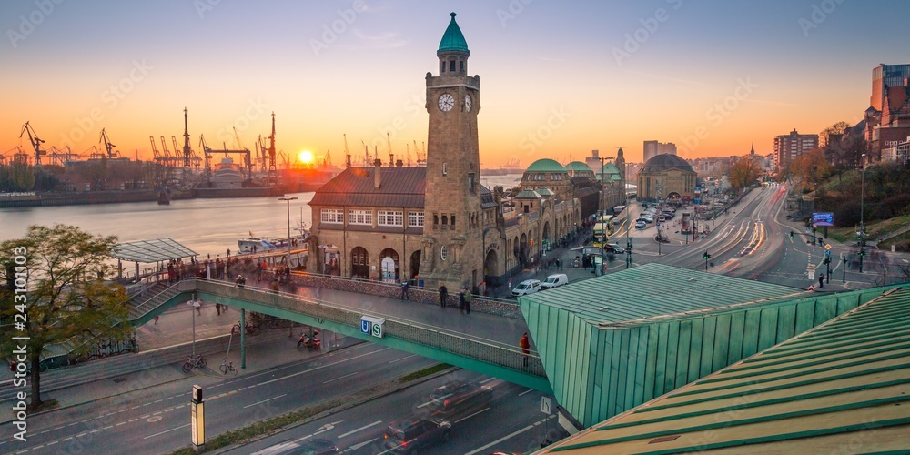 Samolepka Sonnenuntergang an den Hamburger Landungsbrücken