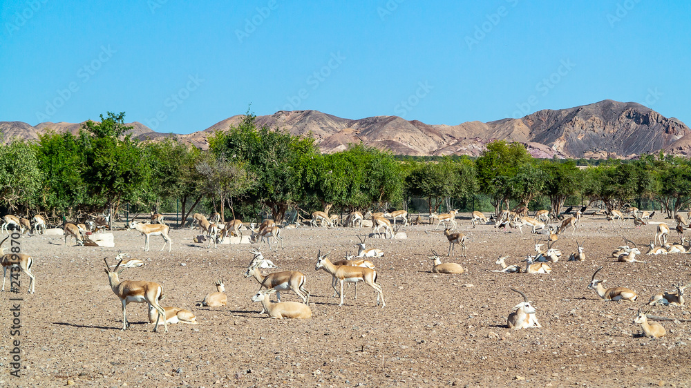 Samolepka Antelope group in a safari park on the island of Sir Bani Yas, United Arab Emira
