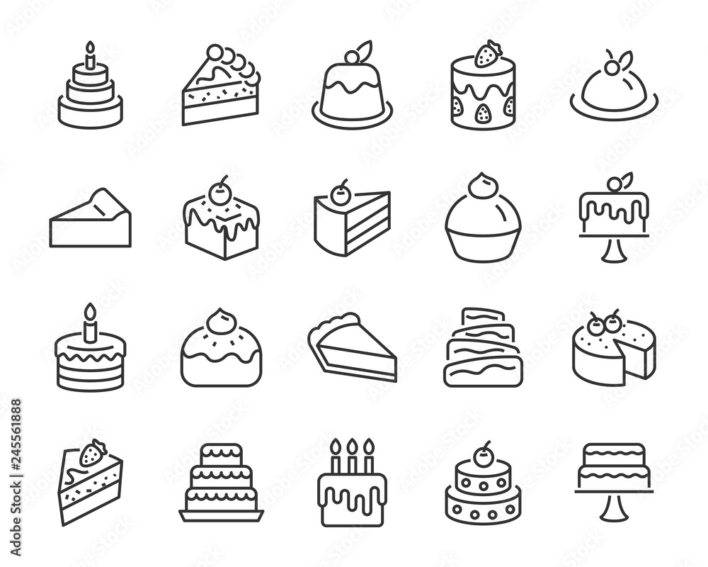 Samolepka set of bakery icons, such as cake, doughnut, bread, cheese, pie, tart